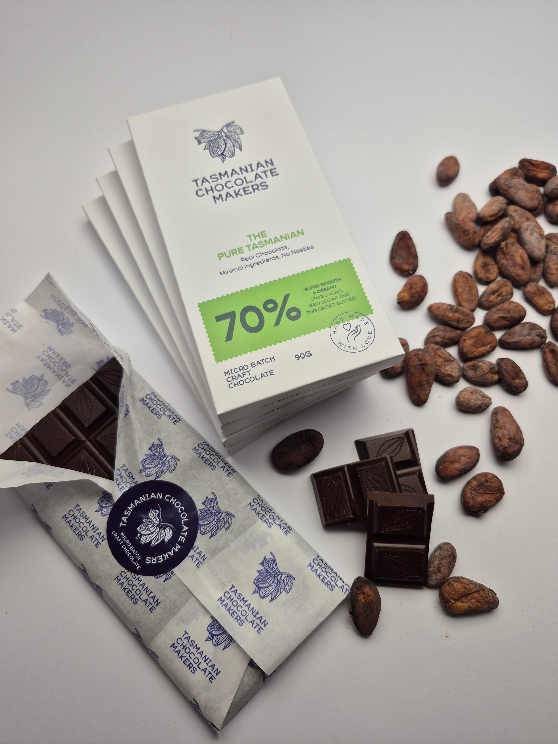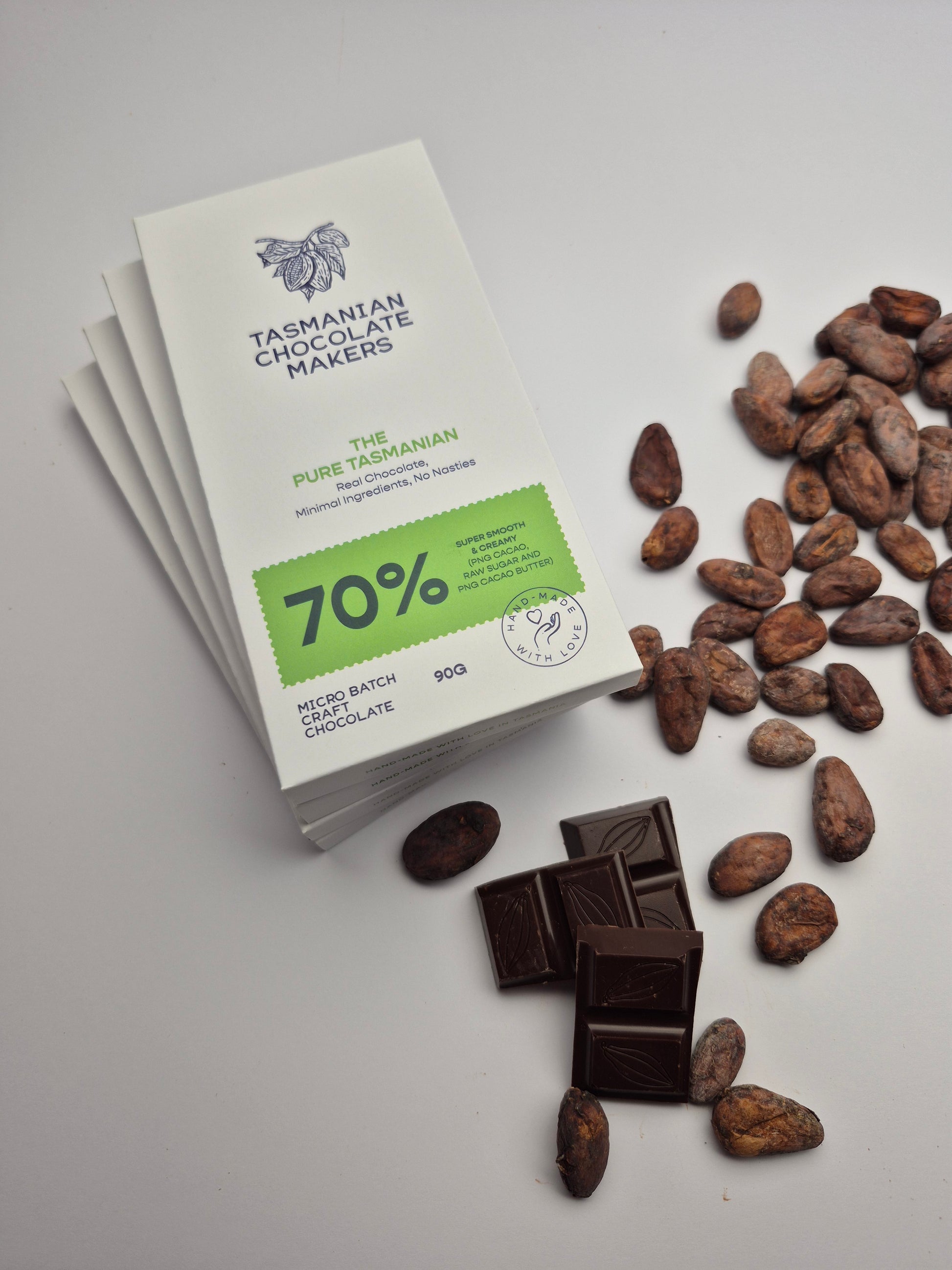 Rich, smooth 70% chocolate - The Pure Tasmanian 70% chocolate